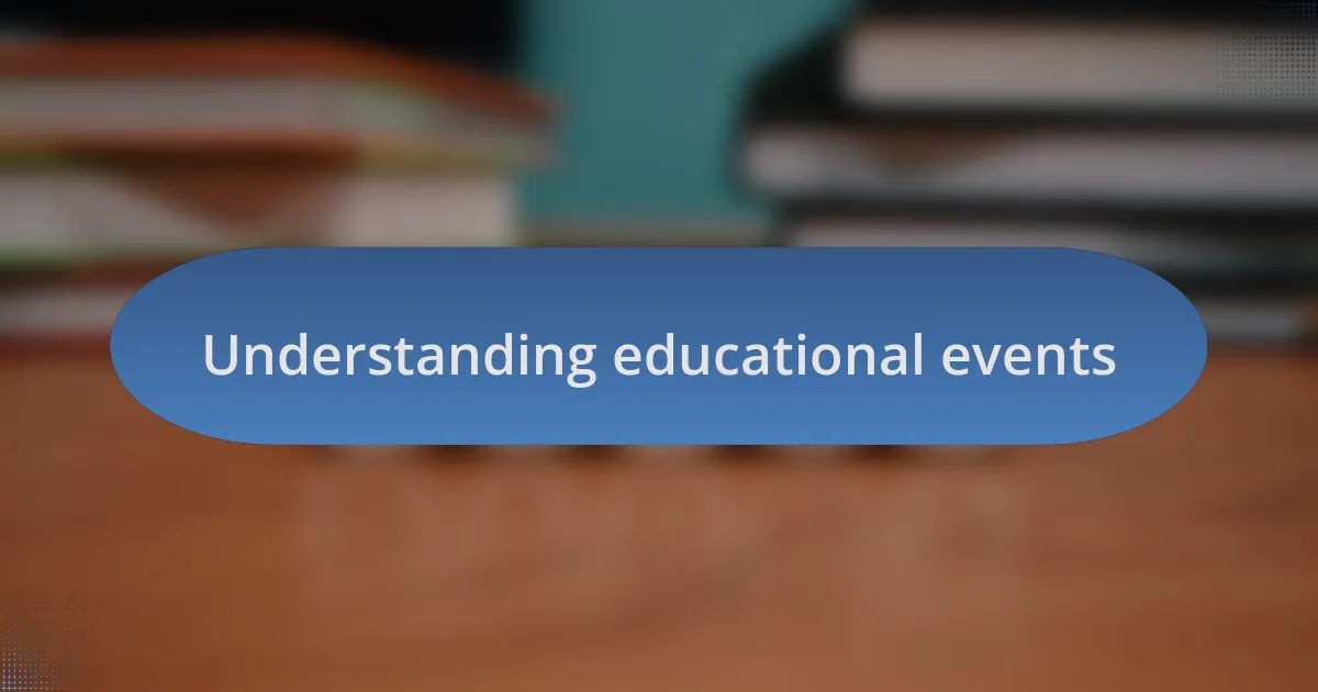 Ultimately, understanding educational events means appreciating their diverse purposes and environments. Whether it’s a vast expo or a focused seminar, each type holds potential for learning and growth. I’ve seen firsthand how tailored learning experiences can leave lasting impressions, shaping our perspectives in ways we never anticipated.